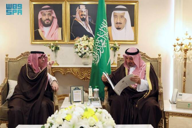 RIYADH: Najran Gov. Prince Jalawi bin Abdulaziz bin Musaed received Bandar Al-Fuhaid, president of the Arab Tourism Organization, on Monday.