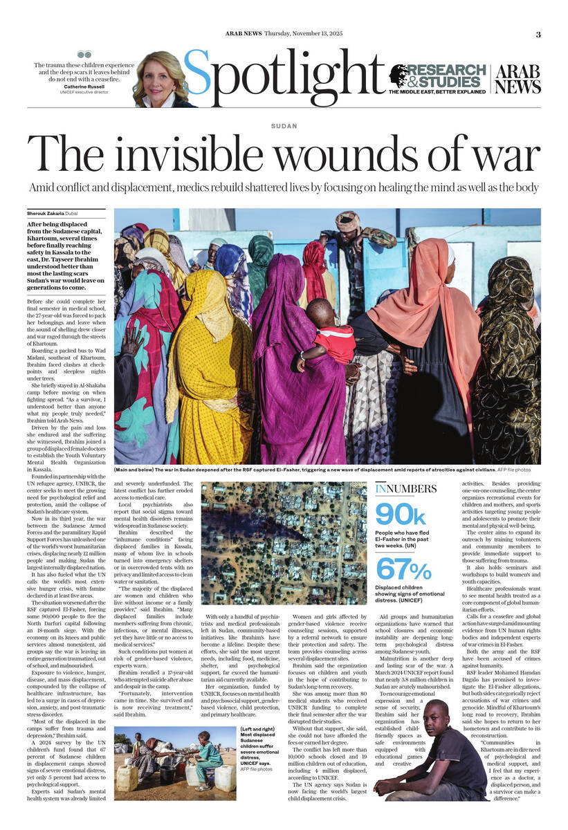 DUBAI: After being displaced from the Sudanese capital, Khartoum, several times before finally reaching safety in Kassala to the east, Dr. Tayseer Ibrahim understood better than most the lasting scars Sudan’s war would leave on generations to come.