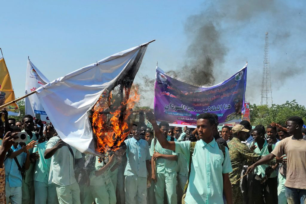Sudanese students take part in an organized march in eastern Sudan's Gedaref city on November 6, 2025 in protest against human rights violations committed by the Rapid Support Forces (RSF) against the people of El- Fasher. (AFP)