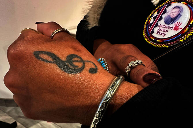 She can’t help but wonder what her son could have accomplished had his life not been taken. A father himself, Zachariah Shorty loved art and music and aspired to be a tattoo artist. She showed off some of his work, pointing to the inked treble clef on her left hand.