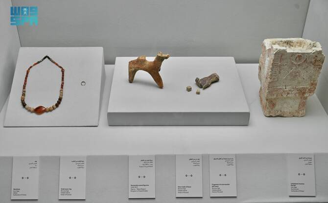 The exhibition traces the region’s history from the Stone Age and the discovery of metals in the third millennium B.C. to the pre-Islamic era and its pivotal role in the Islamic world, the Saudi Press Agency reported.