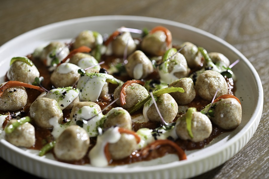 The chef's recipe is a gnocchi with okra and labneh sauce.