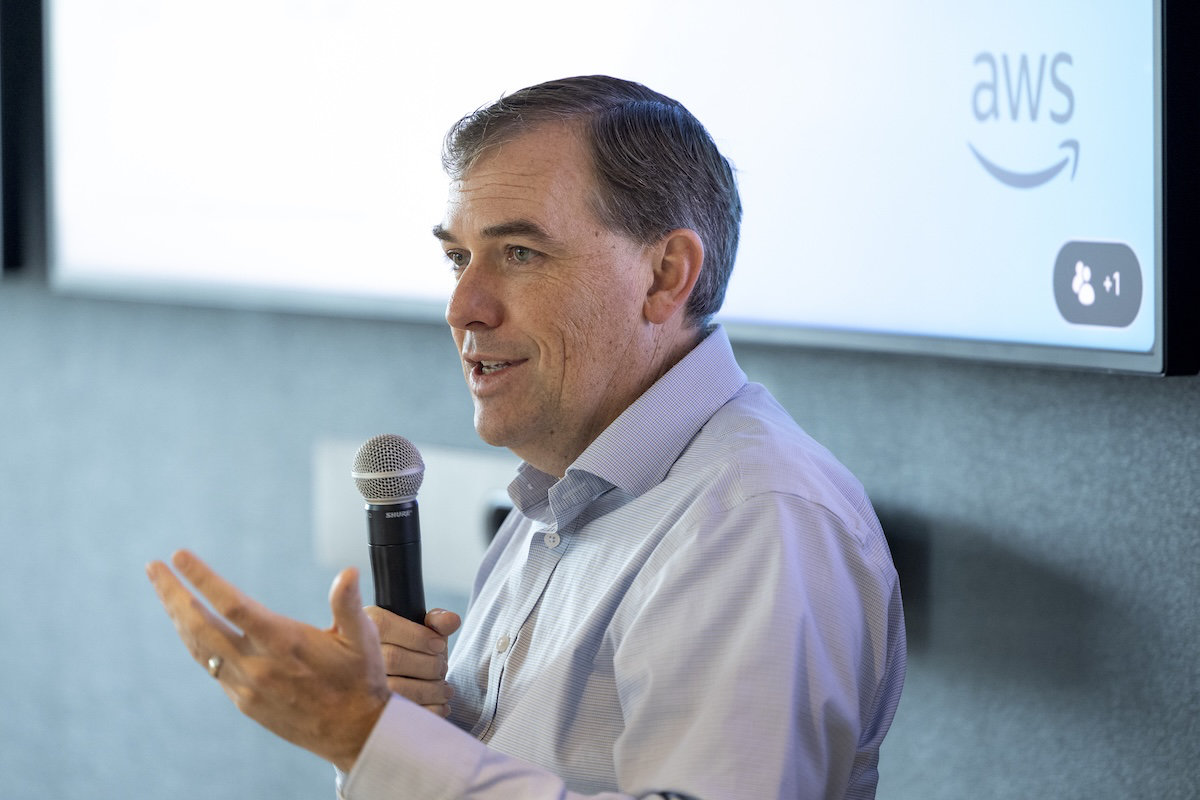 Matt Garman, CEO of AWS, speaking at the company’s Seattle headquarters, where he discussed the rising global demand for energy to support AI growth. (Supplied)