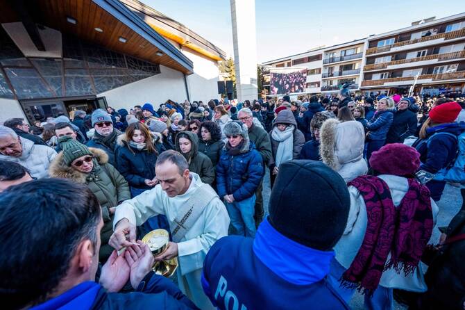 During the Mass, the Rev. Gilles Cavin spoke of the “terrible uncertainty” for families unsure if their loved ones are among the dead or still alive among the injured. “We pray for their friends hard hit by misery on this day that was meant to be one of festivities and friendship,” he said.