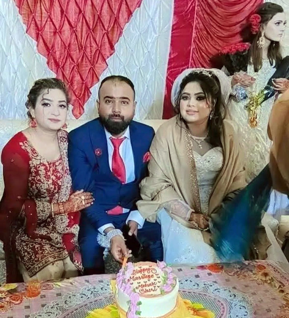 The photograph shows Shahroon Hanif (right) with his wife during their wedding ceremony, who were killed in a gas leakage explosion in Islamabad, Pakistan, on January 11, 2026. (Afzal Khokhar/Social Media)
