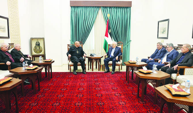 RAMALLAH: President Mahmoud Abbas on Saturday received a delegation of bishops from the Evangelical Lutheran Church, headed by Bishop Imad Haddad, at the presidential headquarters in Ramallah, in the presence of Ramzi Khoury, chairman of the Higher Presidential Committee for Church Affairs in Palestine.