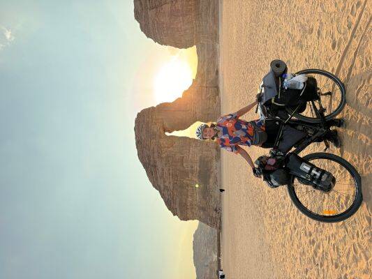 She set off from Moscow heading south last June, passing through Russia, Georgia, and Turkiye before flying from Antalya to Amman. She cycled to Aqaba, crossed the border into Saudi Arabia, and has since traveled through Tabuk, AlUla, Madinah, Jeddah, and Taif on her way to Riyadh.