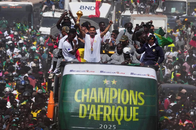 Earlier on Tuesday, the Senegal players rode atop a bus emblazoned with the words “African champions” along Dakar’s corniche toward the presidential palace.