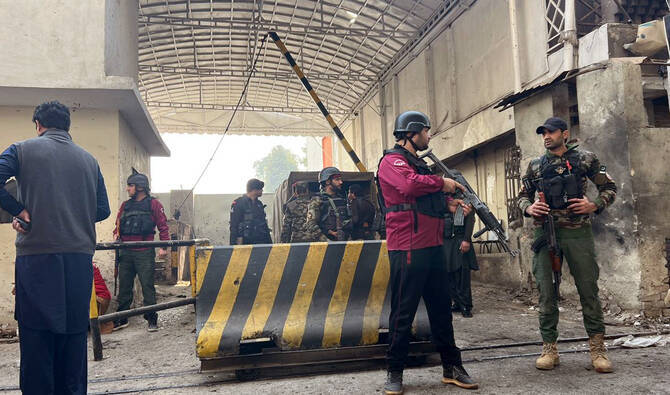 Security personnel stand guard outside the headquarters of the Federal Constabulary in Peshawar, Pakistan, on November 24, 2025. (AN Photo/File)