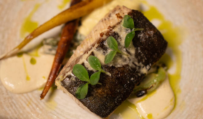 The grilled seabass was simple but cleanly prepared, with a subtle saffron emulsion that didn’t overpower the fish.