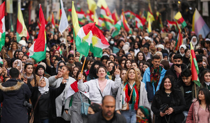In Qamishli on Sunday, thousands of Kurdish men, women and children filled the streets in a show of solidarity, waving Kurdish flags and holding up pictures of fighters who were killed, an AFP correspondent said.