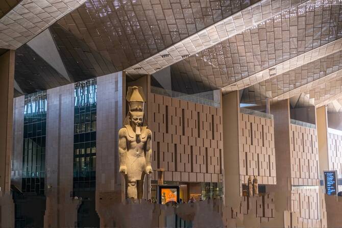 We then returned to Art Cairo’s staging ground, the newly inaugurated Grand Egyptian Museum — the largest archaeological museum in the world dedicated to a single civilization. It houses more than 57,000 artifacts across itsTutankhamun Galleries, Main Galleries, Grand Hall, Grand Staircase and Khufu’s Boat Museum. The 4,600-year-old solar boat of King Khufu, the pharaoh who is credited with building the Great Pyramid of Giza, is a particular draw, along with a showstopping exhibition of the complete collection of King Tutankhamun — more than 5,000 artifacts showcased together for the first time. Both draw hoards of visitors, but are well worth the visit.