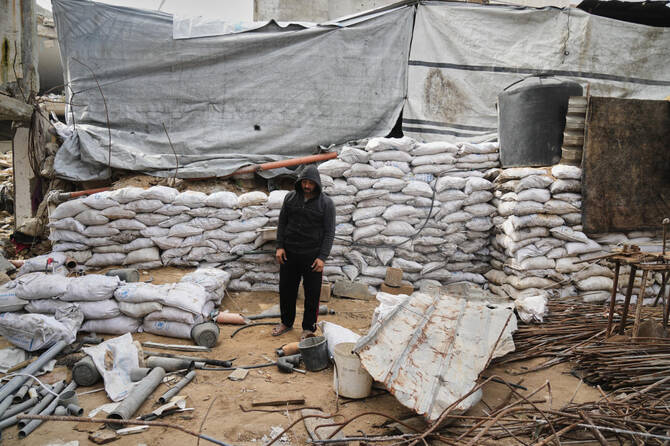 GAZA CITY: Crouching amid a pile of rubble that used to be his Gaza home, Mahmoud Hammad scoops dirt into a large sieve and shakes it, looking carefully before dumping it out.