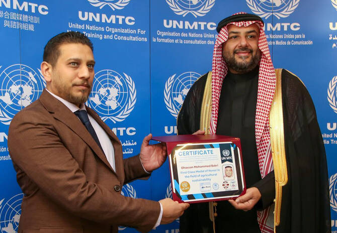 RIYADH: Ghassan Bakri, secretary-general of the Sustainable Agricultural Rural Development Program, known as Saudi Reef, has received a UN first-class medal of honor for his developmental work.
