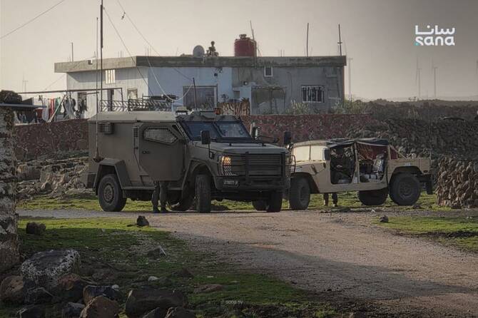 On Wednesday, an Israeli force comprising seven military vehicles entered Wadi Al-Raqad and set up a checkpoint on the Al-Raqad bridge. Additionally, six other vehicles were stationed at the Tell Abu Al-Ghithar gate, as reported by the Syrian Arab News Agency.