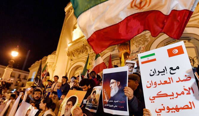 Protesters carried pictures of Khamenei and denounced the war in central Tunis in Tunisia.
