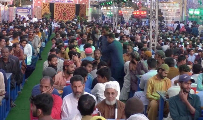 KARACHI: With the call for evening prayers, hundreds of Pakistanis enjoyed free meals provided by local charities for their iftar, the fast-breaking meal during Ramadan in Pakistan’s biggest city, Karachi.
