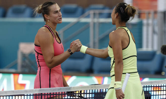 MIAMI: World number one Aryna Sabalenka stayed on course for a rare “Sunshine Double” on Monday, downing China’s Zheng Qinwen in straight sets to reach the quarter-finals of the Miami Open.