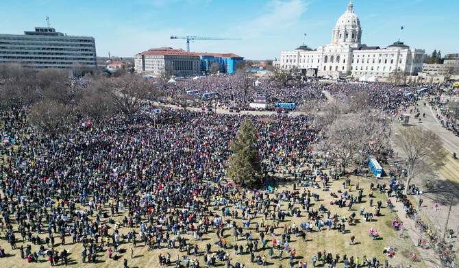 ST. PAUL, Minnesota/DALLAS/LOS ANGELES/WASHINGTON/NEW YORK: Demonstrators decrying US President Donald Trump’s aggressive deportation efforts, war in Iran and other policies took to city streets across the country on Saturday in the third round of the “No Kings” rallies.