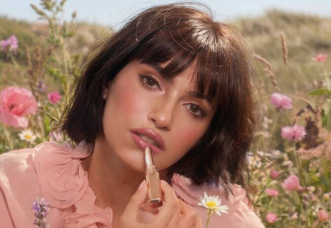 The social media star has 5 million followers on Instagram. The new campaign shows her posing with Charlotte Tilbury’s Pillow Talk Blush Balm Lip Tint and limited-edition Pillow Talk Beauty Soulmates Palette against a backdrop of wildflowers.