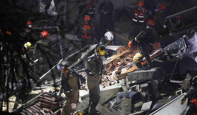 HAIFA, Israel: Israeli rescue services said Monday that the bodies of four missing people had been recovered from the rubble of a residential building in the city of Haifa, after it was struck by an Iranian missile the previous day.