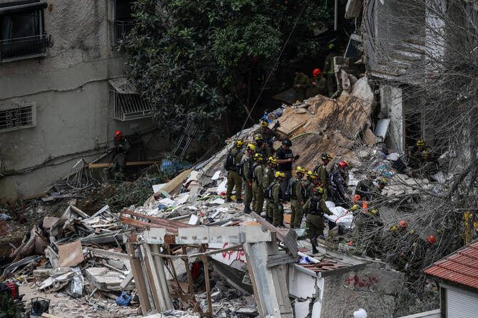 Israeli rescue services said Monday that the bodies of four people had been recovered from the rubble of a residential building in the city, after it was struck by an Iranian missile the previous day.