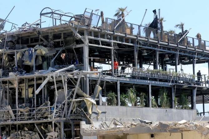 Above, people inspect the damage inside a building destroyed in Israeli strikes in the southern Lebanese coastal city of Tyre on April 21, 2026. (AFP)