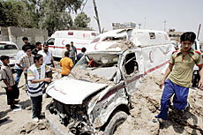 An international agency reporter at the scene said the district’s main Al-Sadr Hospital was badly damaged and a fleet of ambulances was destroyed.