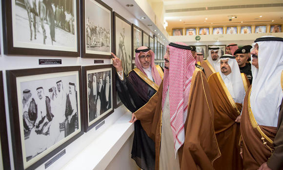 King Salman toured an exhibition, including historical photos of the Kingdom’s past.