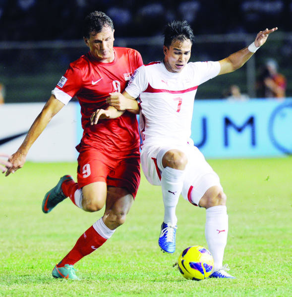 Singapore were making dangerous inroads as soon as play started and the visitors nearly scored before the half hour mark when Sharik Ishak’s header from a Aleksander Duric cross narrowly missed.